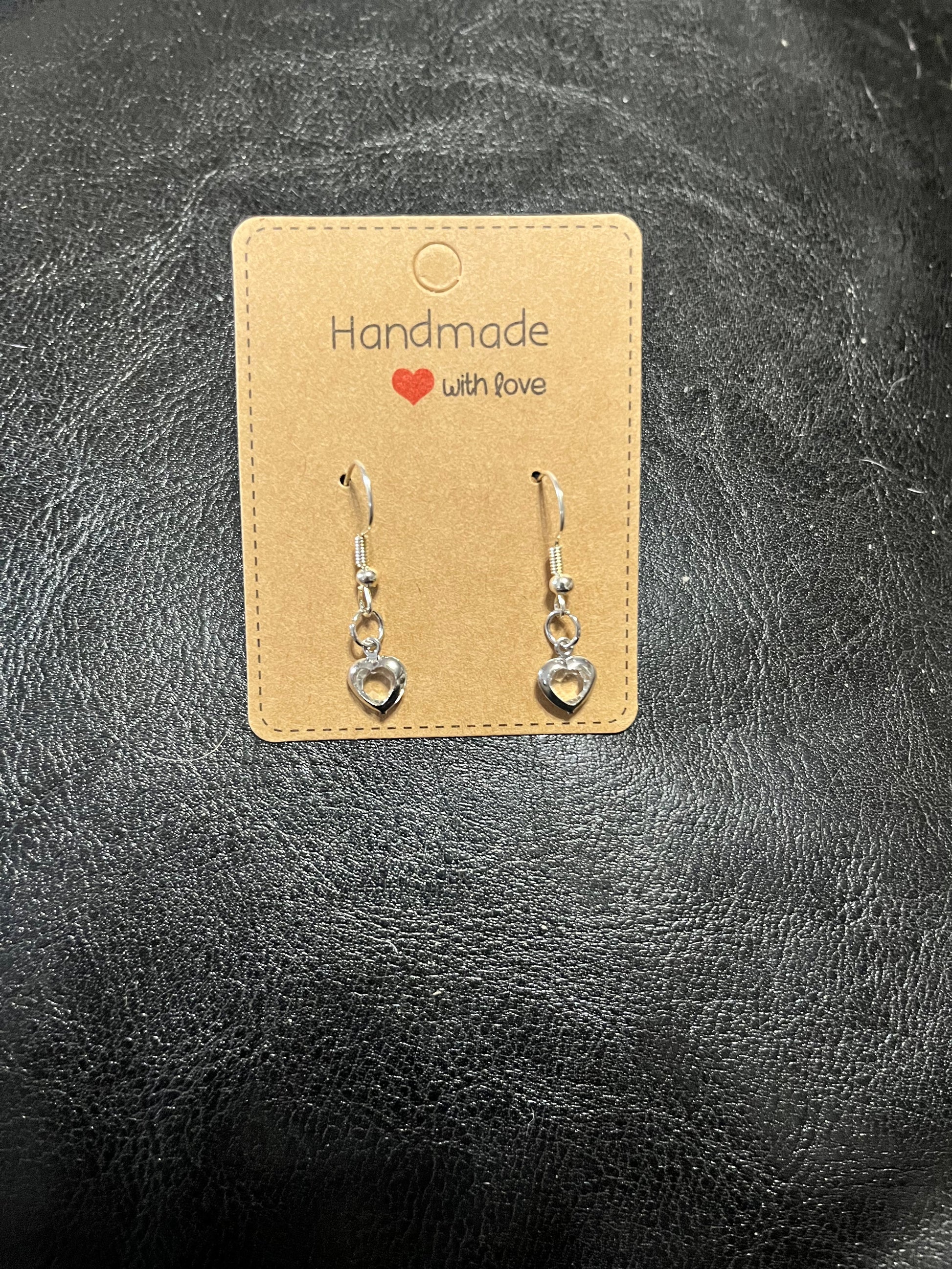These earrings are a small clear heart on a silver fishhook with rubber back